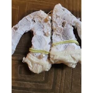 VTG Outfit Dawn Doll White Lace Pantsuit Pearl Buttons Green Trim Shoe Portfolio