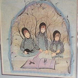VTG P Buckley Moss Amish Girls Story Time LE Storyteller 112/1000 Framed Print