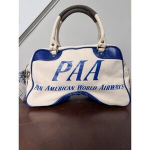 VTG PAA PAN AM Explorer Bag Weekender Pan Am White Canvas Travel Tag RARE EUC