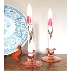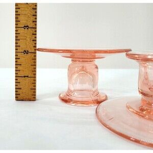 VTG PAIR PINK DEPRESSION GLASS CANDLESTICKS HOLDERS Shabby Chic Farmhouse Decor