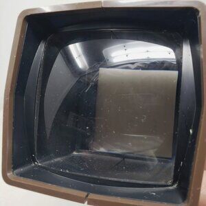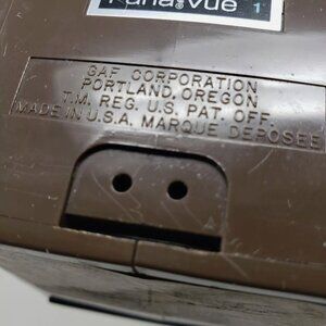 This vintage PANA-VUE 1 slide projection viewer comes with a built-in screen and projection tilt features. The brown-colored light box is made by View-Master and can handle 35 mm slides. Its portability makes it easy to transport to different locations.