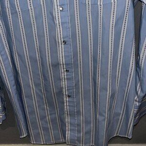 VTG. PANHANDLE SLIM Permanent Press Striped Pearl Snap Western Shirt 16.5" X 35"
