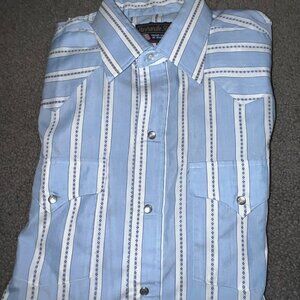 VINTAGE. PANHANDLE SLIM Permanent Press Striped Pearl Snap Western Shirt