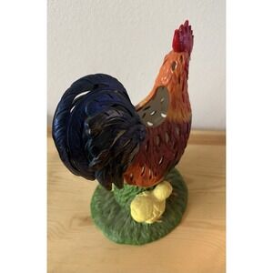 VTG PARTYLITE ROOSTER & CHICKS Ceramic Tea Lite Candle Holder COLORFUL Cottage