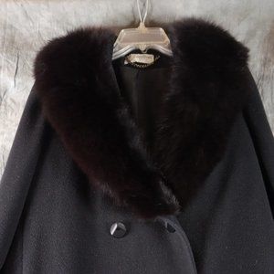 50s-60s Full Length Black Wool Coat with Black Fur* Collar