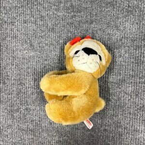 This adorable stuffed animal is a delightful vintage plush. The lion sits proudly at 9 inches and sports a cute red bow.