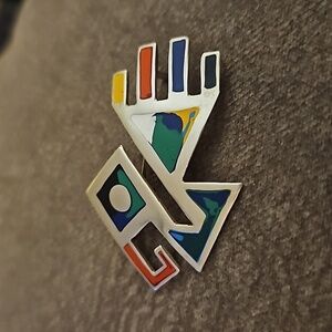 VTG PERUVIAN Sterling Silver 925 Modernist Rainbow Enamel Bird Brooch