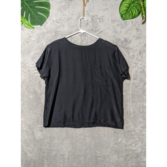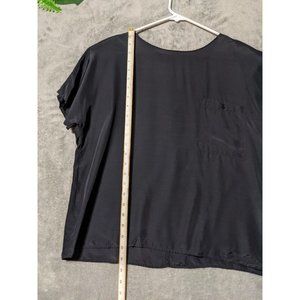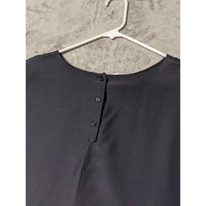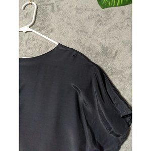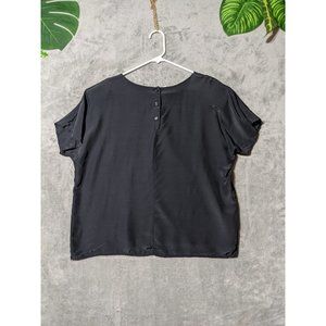 VTG PETITE IMPRESSIONS 100% Rayon Women Blouse Padded Shoulder Black SIZE 14