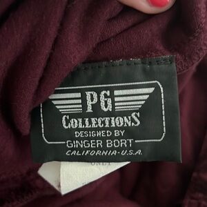 VTG PG Collections,Burgundy Velvet, Low V-Neck, Pockets, Stirrup Pants Romper, 8