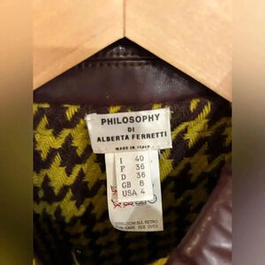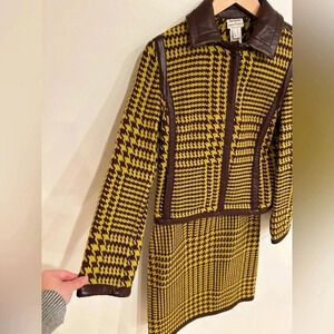 VTG PHILOSOPHY DI ALBERTA FERRETTI Wool houndstooth leather Skirt Jacket Set S