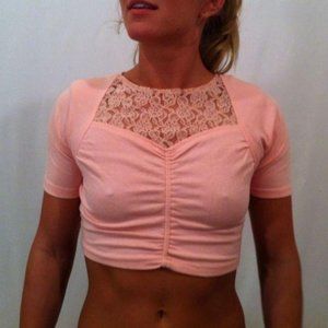 VTG PINK LACE CROP TOP SHOULDER PADS WOMENS S/M