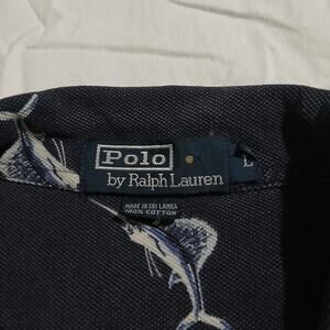 POLO by Ralph Lauren large Navy Blue 100% cotton SAILFISH polo short-sleeved