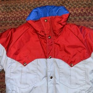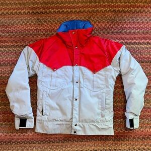 VTG POWDERHORN MOUNTAIN GREY & RED GOOSE-DOWN SNOW JACKET APRES SKI