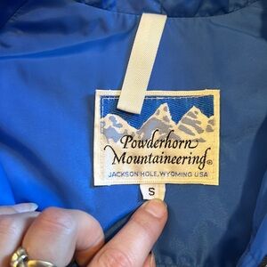 EUC. Made in Jackson Hole Wyoming USA. Four front pockets. Authentic high quality well made goose down jacket. Brand is Powderhorn Mountaineering.