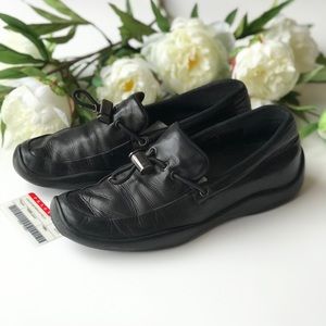 1990s PRADA Calzature Donna Black Leather Nappa in Pelle Sport Shoes Sneakers