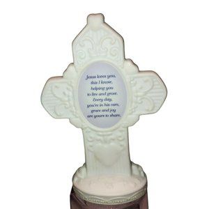 VTG PRECIOUS MOMENTS GOD MOTHER CROSS BY ENESCO 1998 JESUS LOVES YOU CERAMIC