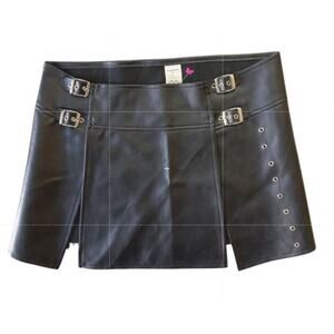 Vtg Black Goth Punk PVC Buckle Mini Skirt Leg Avenue Gothcore Medium