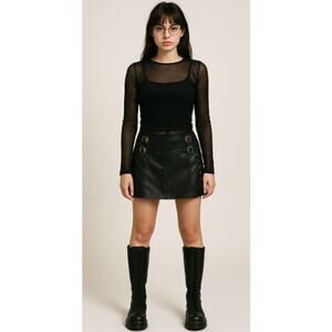Vtg Black Goth Punk PVC Buckle Mini Skirt Leg Avenue Medium