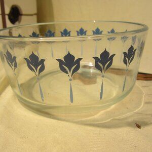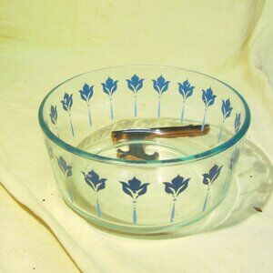 VTG 90'S PYREX CLEAR GLASS BOWL WITH PINWHEEL DESIGN, 2 TONE BLUE DESIGN, MADE IN USA #7203