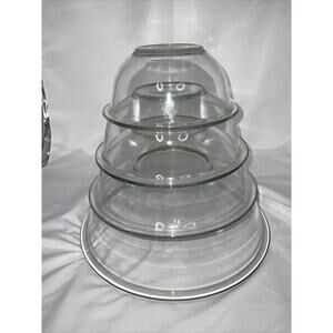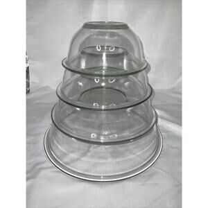 VINTAGE SET OF 4 NESTING CLEAR PYREX BOWLS MIXING SERVING BOWLS.