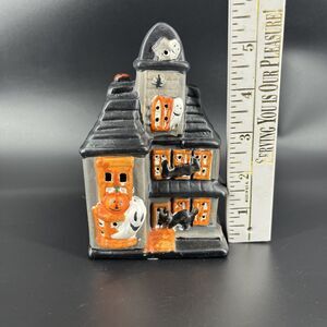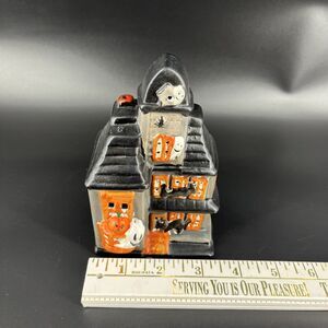 VTG Pacific Rim Halloween Ceramic Ghost House Black Cats Missing Light 5.5"