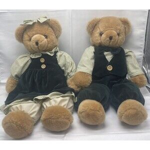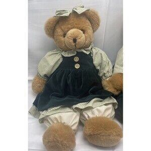 VTG Pacifix Int’l Couple 19” Teddy Bear in Green Velvet Outfit Stuffed Animal