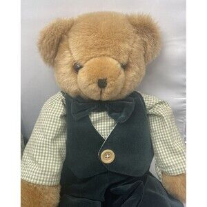 VTG Pacifix Intl Couple 19 Teddy Bear in Green Velvet Outfit Stuffed Animal. Measurements photographed. Vintage. Ships quickly. RARE HARD TO FIND