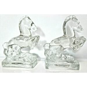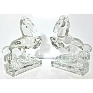 VTG Pair 1940's American Glass Co Smith GLASS HORSE BOOKENDS 8" Limited Edition