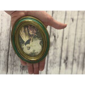 VTG Pair Italian Art Print Oval Frame Action Pink Green Handcraft Italy Florence