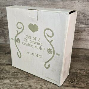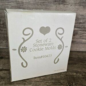 VTG Pair New Stoneware Cookie Molds Heart Easter Spring ABC Distributing 10425