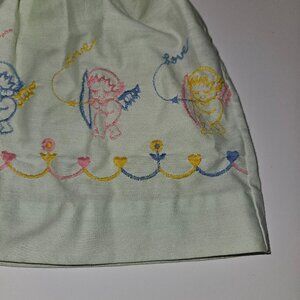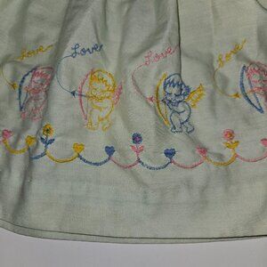 VTG Pale Green Dress Baby Girl 6 Months Embroidered Angels Cupid Valentine's Day