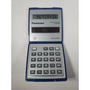 This vintage Panasonic Solar Calculator JE-362NU is a vintage electronic device manufactured in Japan by Panasonic. This silver folding calculator is known for its durability and functionality, making it a valuable collectible for vintage electronics enthusiasts. With its retro design and reliable performance, this Panasonic calculator is a prime example of quality craftsmanship from a trusted brand. Pre-owned. Pre-loved. Tested and works well. Inside is nice condition. Outside case has a few dents and many scratches. See photos for condition and wear. Silver and blue. Collectible.