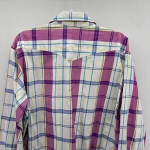 Vintage Panhandle Slim Permanently Pressed Purple White Yellow Plaid Long Sleeve Pearl Snap Western Shirt