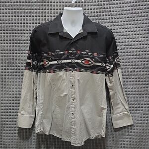 VTG Panhandle Slim SnapButton Shirt SzLg Mens Aztec SouthWestern Longsleeve DUNN