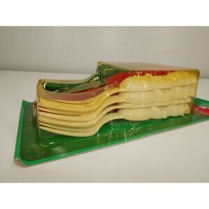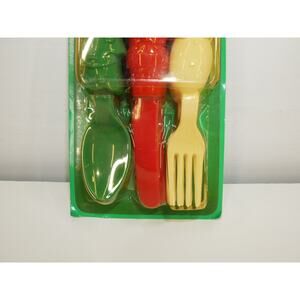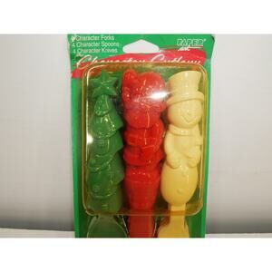 VTG Paper Art Santa Frosty & Christmas Tree Plastic Silverware Spoon Fork Knife