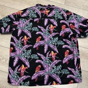 VTG Paradise Found Shirt Mens 3XL Black Purple Parrot Magnum Pi USA Hawaiian