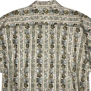 VTG Paradise of the Pacific Hawaiian Shirt XL Tan Floral Print Coconut Button