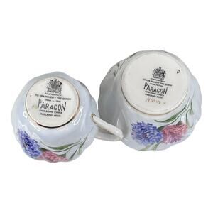 Vintage Paragon CREAMER & Open SUGAR BOWL Set Cornflower Pink Blue Flowers Gold Trim - NEW Condition!