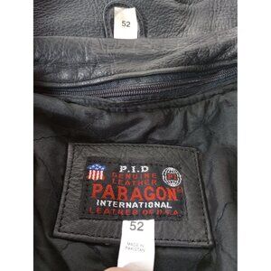 Vintage Paragon International Harley Davidson Fatboy Leather Jacket Size 52. JACKET FITS LIKE A SIZE LARGE, PLEASE LOOK AT THE MEASUREMENTS IN PHOTOS FOR SIZE REFERENCE. JACKET IS ALSO A BIT SHORTER THAN USUAL SEE MEASUREMENTS. Very good pre-owned condition. I think the Fatboy & Harley Davidson Patches were added, they were done very well. Jacket looks great. Heavy Leather Motorcycle Jacket. Excellent Condition.