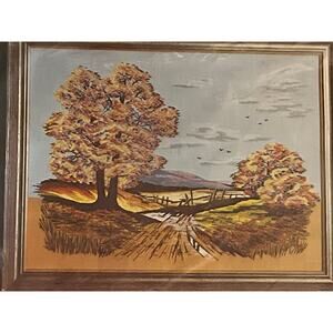 VTG Paragon NeedleCraft Creative Crewel Stitchery Fall Country Road Trees 0420