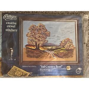 Vintage Paragon Needle Craft Creative Crewel Stitchery "Fall Country Road"