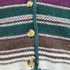 VTG Paris Sport Club Cardigan Sweater Women's S Green Stripe Ramie Cotton EUC