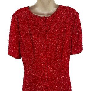 VTG Parisian Room Red Beaded Sequin Sheath Flapper Silk Holiday Party Dress 10