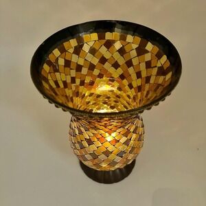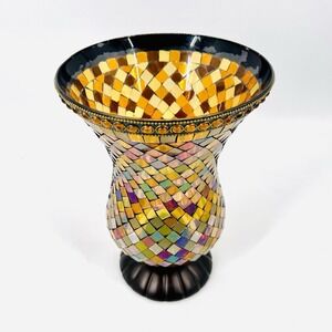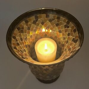 Vintage PartyLite Global Fusion Hurricane Mosaic Glass Candle Holder P8366