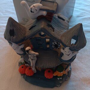 VTG PartyLite Halloween Ceramic Haunted Tealight House Candle Holder P7311 w Box