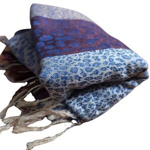VTG Passigatti 100% Pashmina Cashmere Scarf Wrap Blue Plum Italian Luxury Fringe