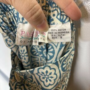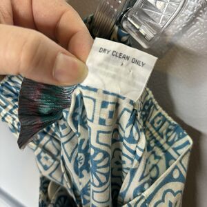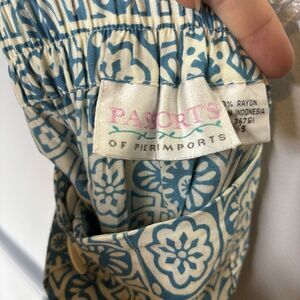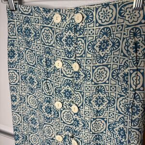 VTG Passports Pier 1 Imports Small Button Front Midi Skirt Blue Cream Geometric