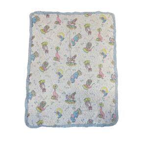 VTG Pastel Circus Theme Nursery Baby Blanket Quilt Crib Ruffle Bedding 30 X 40”