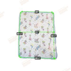 Bring a touch of vintage charm to your nursery with this adorable pastel circus theme baby blanket. Measuring approximately 30” x 40”, this quilted crib blanket features playful circus-inspired prints framed with a sweet ruffled edge. Its soft colors make it perfect for a baby’s room, whether used as bedding, décor, or a cherished keepsake. This blanket is pre-owned and shows some signs of age. Please note: the threading in the ruffles is becoming loose in some areas, but overall the blanket remains in good condition with plenty of use and life left. A wonderful retro find for collectors of vintage baby items or anyone looking to add nostalgic style to a nursery.