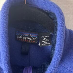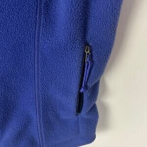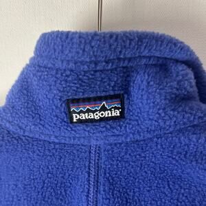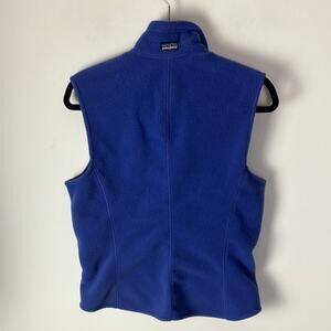 Gently Used Vintage Patagonia Full Zip Fleece Vest. This is a women’s medium. Blue / purple color throughout. Front zipper pockets. Patagonia patch logo on the back collar. 100% polyester. Made in USA.